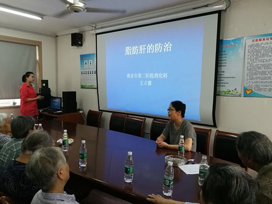 9月12日下午,鼓楼总支部根据2017年的共建工作计划,邀请第二医院支部副主委王立蓉主任在热河南路街道新和园社区,为社区居民作《脂肪肝的防治》健康讲座。