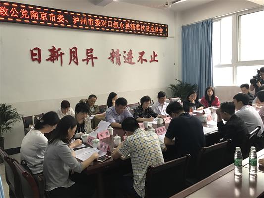 在致公党南京市委、泸州市委对口精准扶贫座谈会上,胡勤刚主委详细询问了叙永县在精准脱贫工作方面的情况以及推进脱贫工作中的难点问题;陈玄副主委介绍了市委会定点帮扶毕节七年来的工作经验和做法,并结合泸州实际情况,提出了市委会今后对口泸州教育、医疗帮扶工作计划和方向;叙永县副县长吴立凡介绍了叙永县经济社会发展和脱贫攻坚工作概况;叙永县卫计委、教育局的相关负责人就近年来叙永县开展教育扶贫、卫生扶贫工作的有关情况作了简要说明;致公党服务社会工作委员会主任洪智强就叙永县如何从需求出发,更合理设置职业教育课程、将学校教育与就业方向更好对接等方面与叙永县职业教育学校进行了沟通。