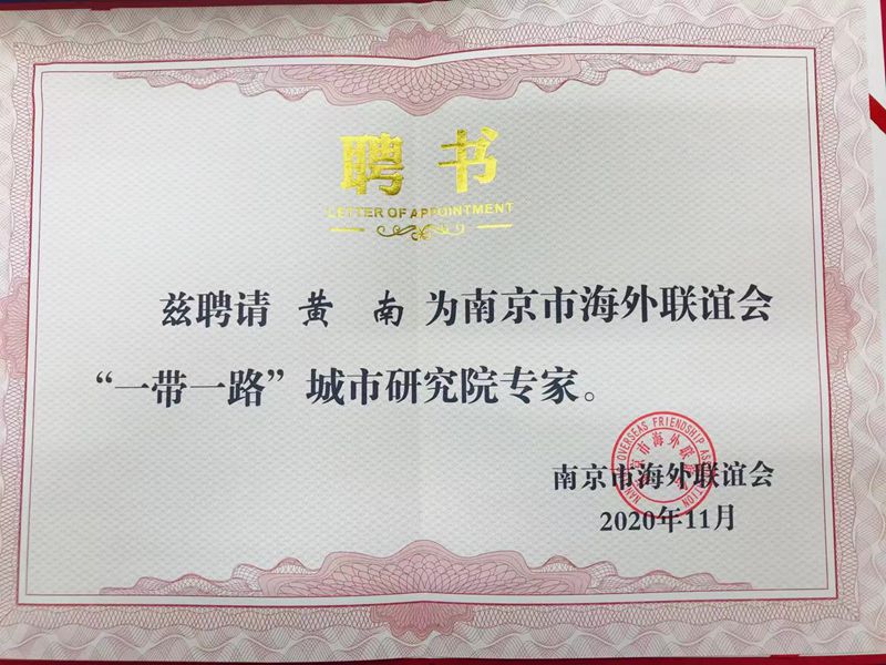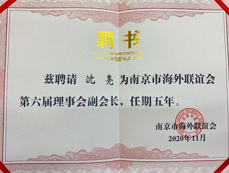 会上,陈玄副主委、青委会主任沈亮获聘为南京市海外联谊会第六届理事会副会长,黄南副主委获聘为南京市海外联谊会“一带一路”城市研究院专家,党员陈阳、雷开宇获聘为理事。