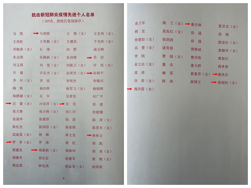 马珺轶、乔岩、孙锦平、汪蕾、沈亮、林传文、罗亭、周莉莉、秦引林、潘承汉、薛福阳、魏洪霞被表彰为抗击新冠肺炎疫情先进个人。